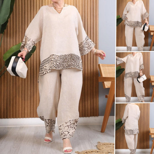 Damen Casual Loose Langarmshirt Hohe Taille Split Wide Leg Pants Set