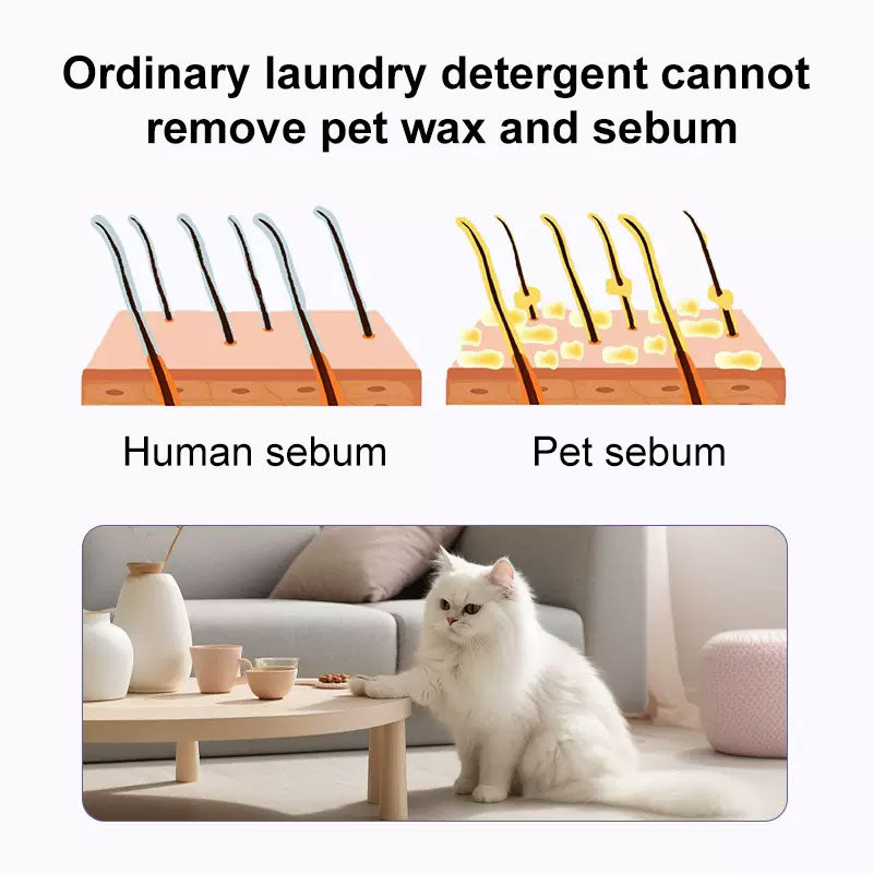 AVANCERAD TEKNIK FÖR BORTTAGNING AV HUSDJURSHÅR- Vårt tvättmedel för borttagning av husdjurshår drivs av avancerad teknik som riktar in sig på och eliminerar husdjurshår under tvättprocessen. Till skillnad från traditionella tvättmedel som kan lämna spår av päls, bryter vår formel ner och lyfter inbäddat djurhår från tyger, vilket garanterar en grundlig rengöring vid varje tvätt.