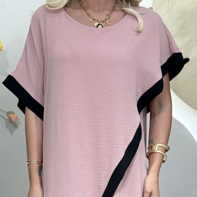ELEGANTES DESIGN: Das Set besteht aus einem einzigartigen Top mit asymmetrischem Schnitt und weiten Hosenbeinen, beide in zartem Pink mit schlanker schwarzer Akzente. Der Kontrast an den Kanten verleiht einen mutigen, stilvollen Hauch – perfekt für diejenigen, die auffallen möchten.
